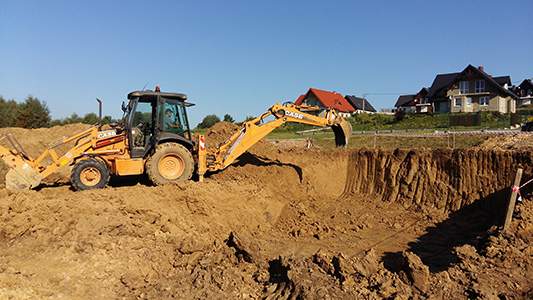 Świadczymy usługi w zakresie robót ziemnych Koparko-Ładowarką CASE 580 SR